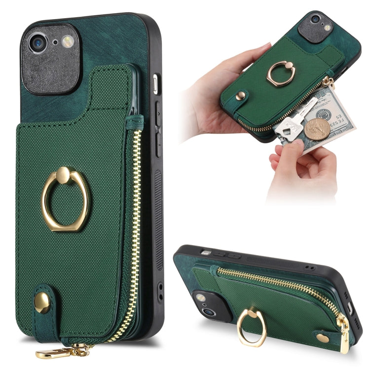 Estuche para Teléfono iPhone 6/6S con Billetera Cremallera Vertical y Anillo de Cuero (Verde)