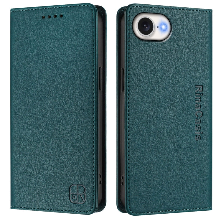 Funda de Cuero con Doble Pliegue y Succión Magnética para iPhone SE 2024 Rc01 (Verde Oscuro)