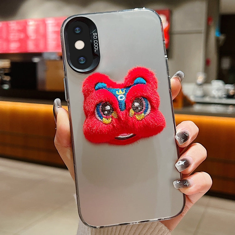 Funda para teléfono Apple iPhone Xr Año Nuevo Lion Dance Plush Doll (Grey Back Red Lion)