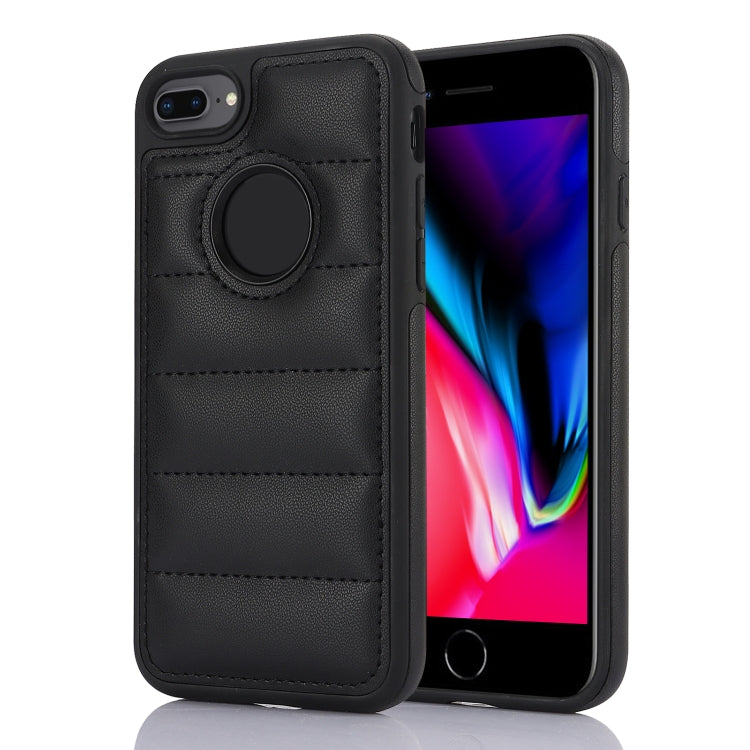 Funda para iPhone 8 Plus/7 Plus Empalme Costura Caja de Teléfono de PU con Recorte (Negro)
