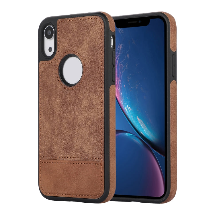 Funda para iPhone Xr Empalme Costura Caja de Teléfono de PU con Recorte (Marrón)