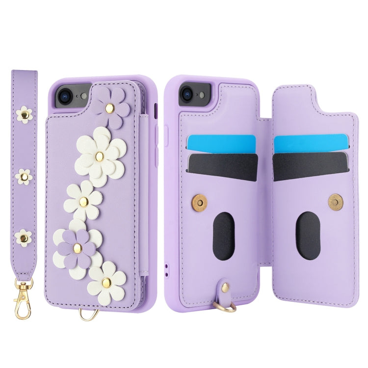 Funda de Cuero para iPhone 8 Plus/7 Plus Estampado de Flores (Morado)
