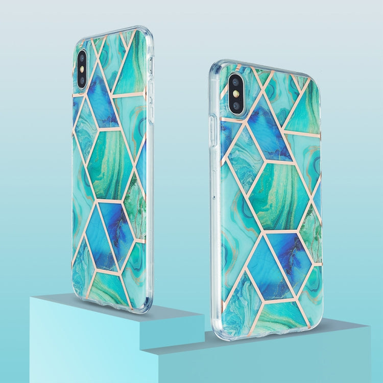 Funda protectora para iPhone Xs Max TPU 3D Galvanoplastia PatrĂłn de MĂĄrmol (Verde Azul)