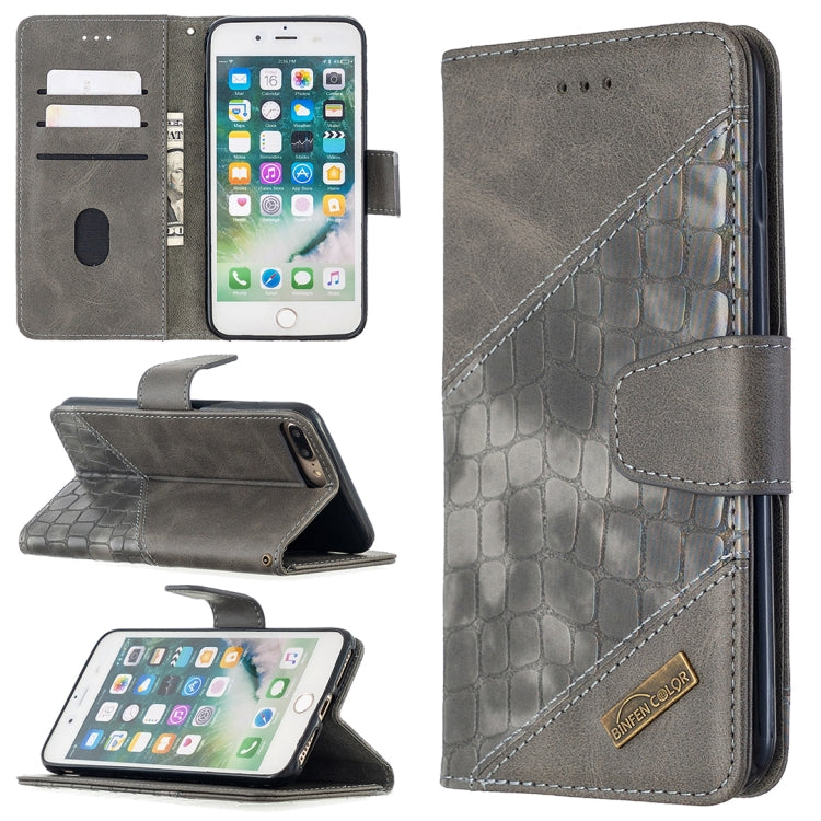 Funda para iPhone 8 Plus Cuero Pu con Tapa Horizontal Billetera Soporte y Ranuras para Tarjetas (Gris)