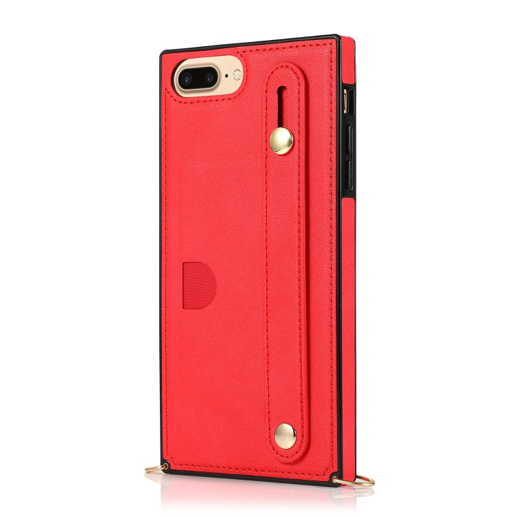 Funda para iPhone 8 Plus / 7 Plus con Correa de Muñeca PU y TPU, Soporte, Ranura para Tarjeta (Púrpura)