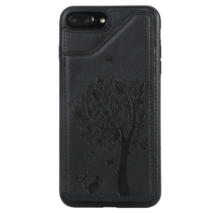 Funda Protectora iPhone 7 Plus 8 Plus Patrón Relieve Árbol de Gato Ranuras Tarjetas Marco Fotos (Negro)