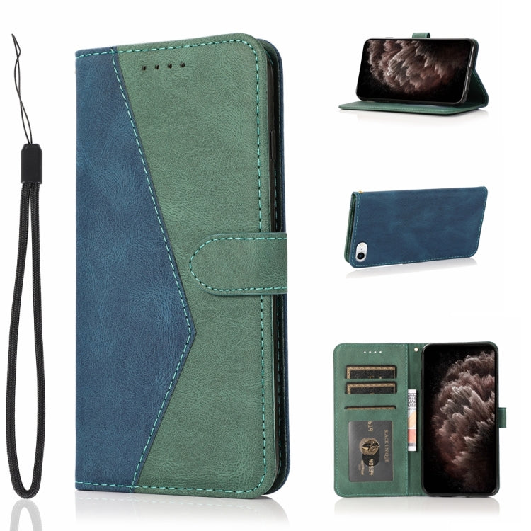 Funda de Cuero iPhone SE 2022/2020 Costuras Dos Colores (Azul Verde)