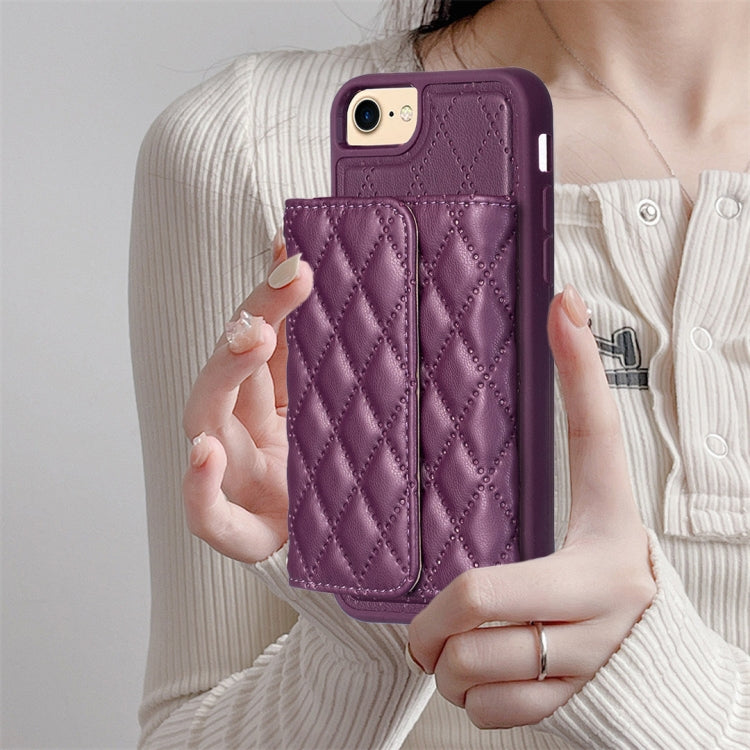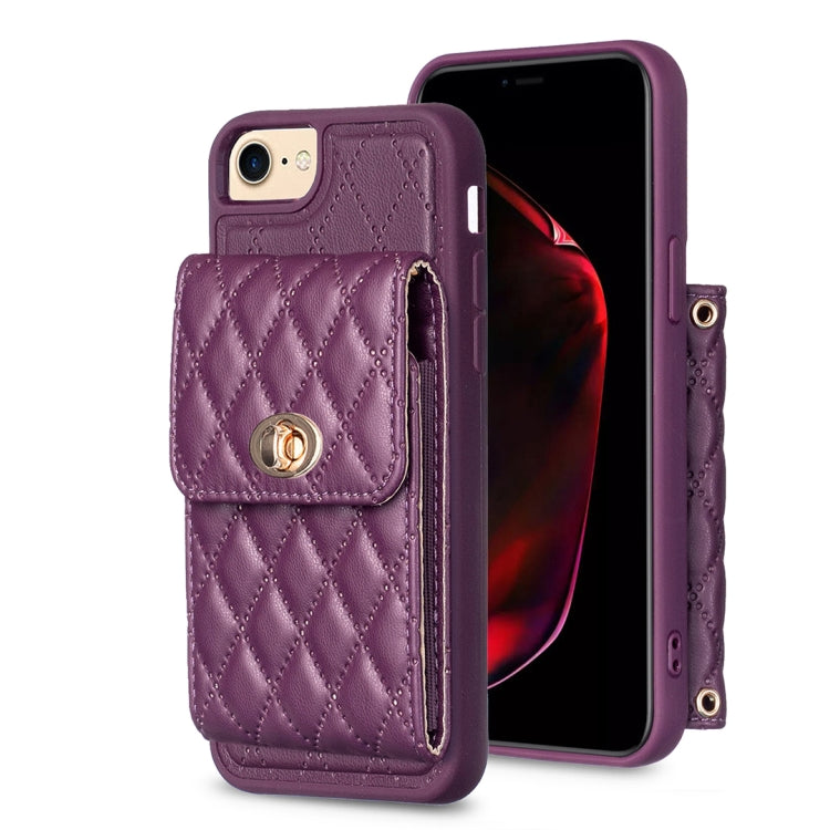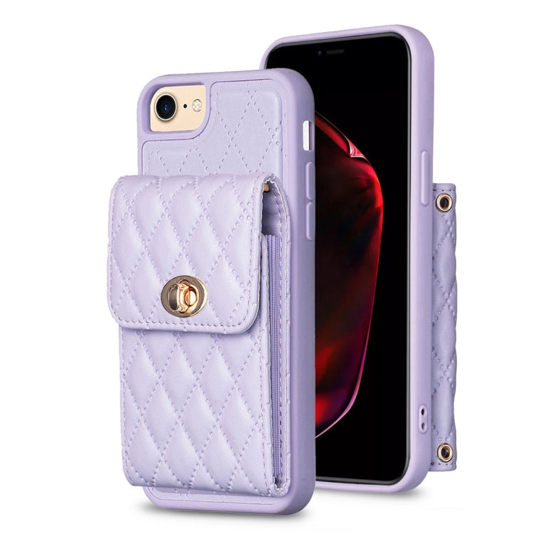 For iPhone SE 2022 / SE 2020 / 7 / 8 Vertical Metal Buckle Rhombic Leather Phone Case (Purple)