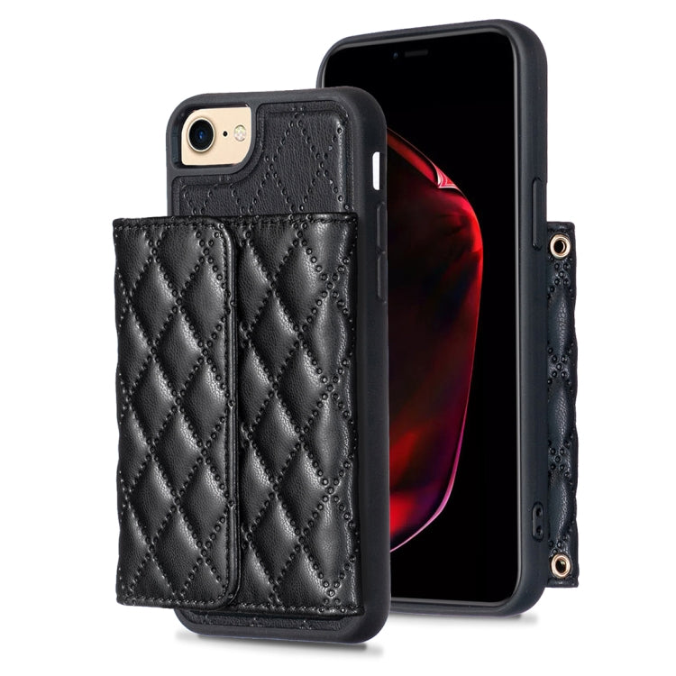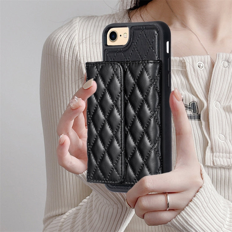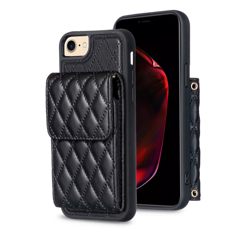 For iPhone SE 2022 / SE 2020 / 7 / 8 Vertical Wallet Rhombic Leather Phone Case (Black)