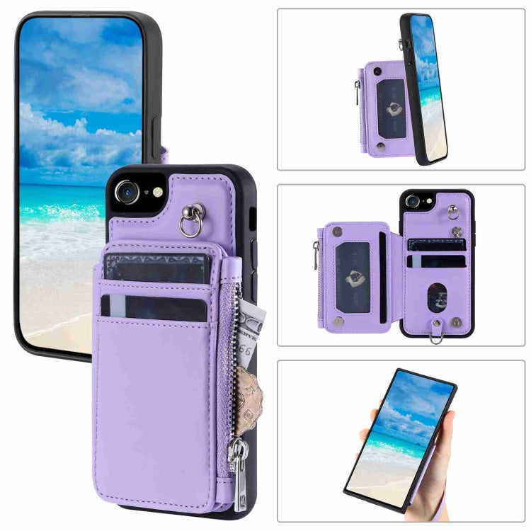 Funda para Teléfono iPhone SE 2022/SE 2020/8 Rfid con Ranuras y Cremallera (Púrpura)