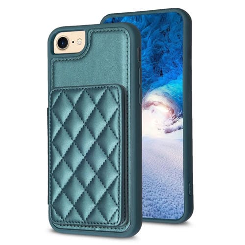 Funda para iPhone SE 2022/2020/8/7 Bf25 Square Plaid Porta Tarjetas (Verde)