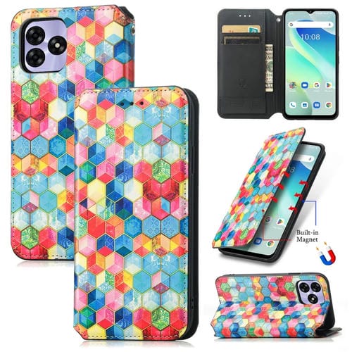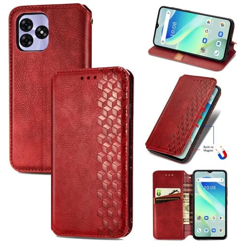 Funda para Umidigi G5 Cubic Grid de Cuero Magnético Prensado (Verde)