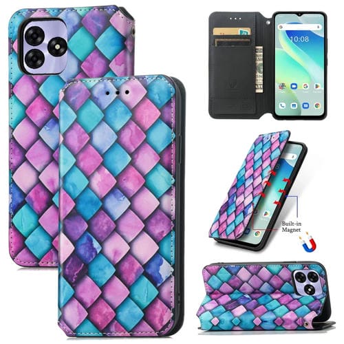 Funda de Cuero Magnética para Umidigi G5 Caseneo (Escamas Moradas)
