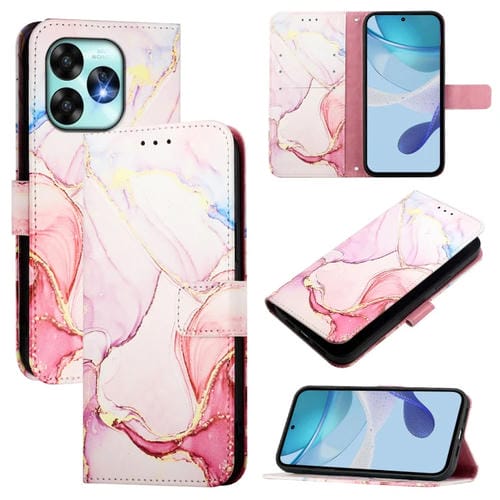 Funda de Cuero con Tapa y Diseño Mármol Pt003 para Umidigi A15/A15C/A15T (Oro Rosa)