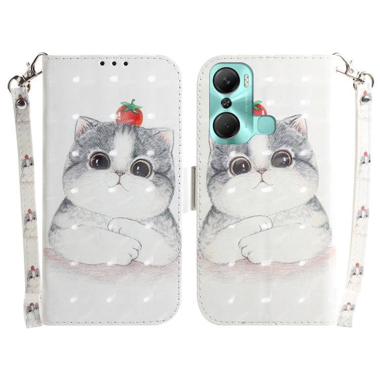 Estuche de Cuero para Infinix Hot 20 Play con Tapa y Patrón 3D Gato Lindo (Color)
