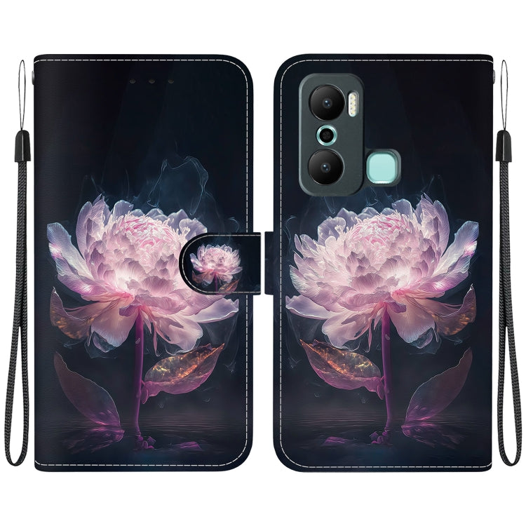 Estuche de Cuero para Infinix Hot 30 con Dibujo Coloreado y Textura de Cristal (Peonía de Cristal)
