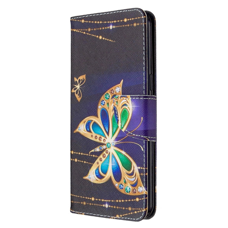 Estuche de Cuero para LG K61 con Dibujo Coloreado y Textura de Cristal (Mariposa Dorada Rosa)