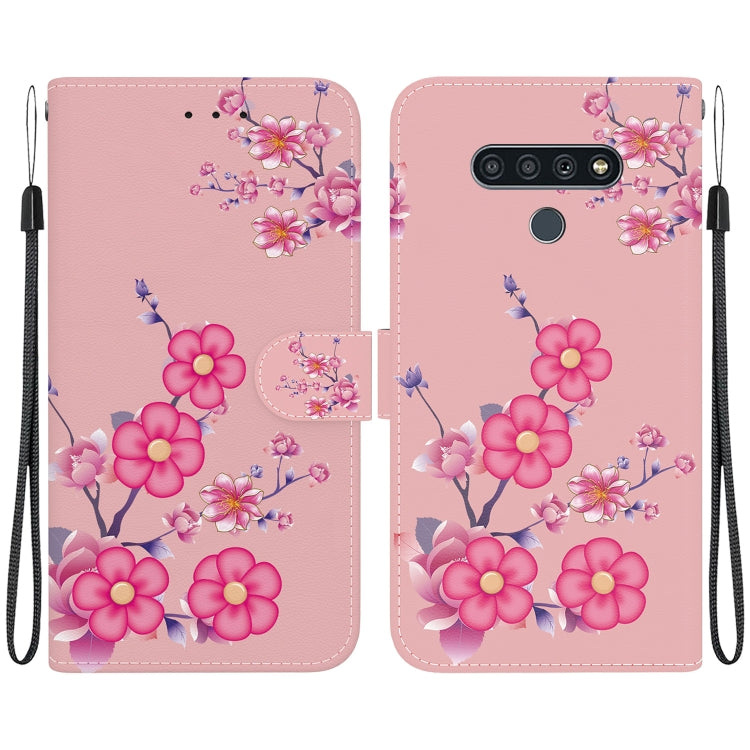 Estuche de Cuero para LG Stylo 6 / K71 con Dibujo Coloreado y Textura de Cristal (Flores de Cerezo)