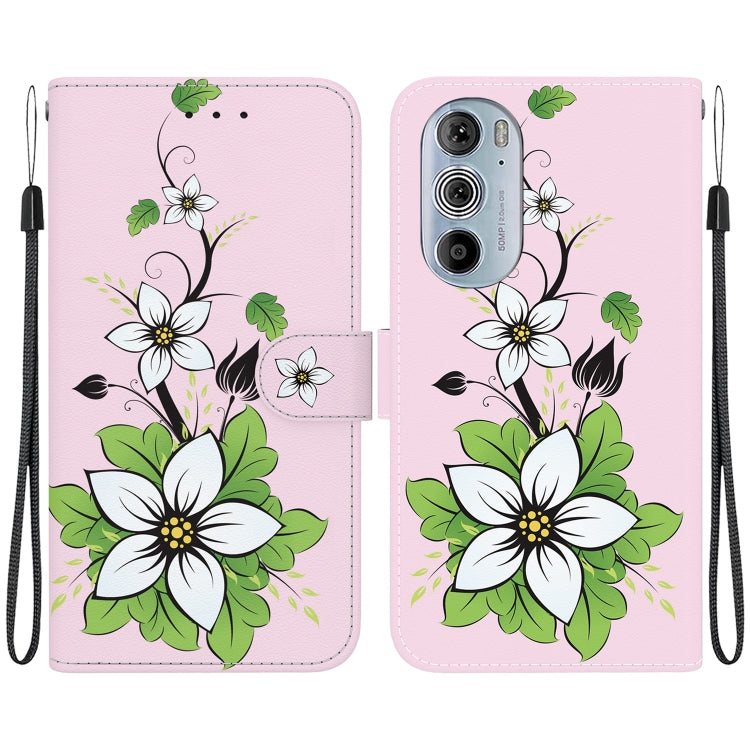 Estuche de Cuero para Motorola Edge + (2022) con Dibujo Coloreado y Textura de Cristal (Lirio)