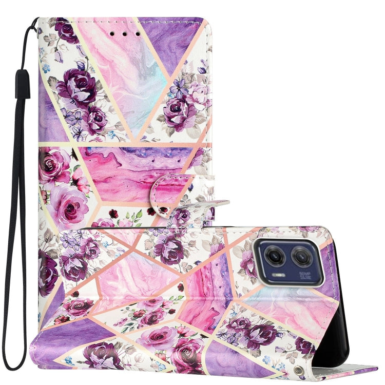 Estuche de Cuero para Motorola Moto G73 con Dibujo Coloreado y Textura de Cristal (Peonía Púrpura)