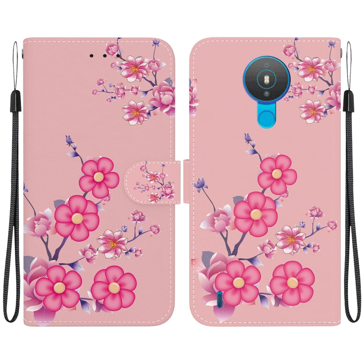 Estuche de Cuero para Nokia 1.4 con Dibujo Coloreado y Textura de Cristal (Flores de Cerezo)
