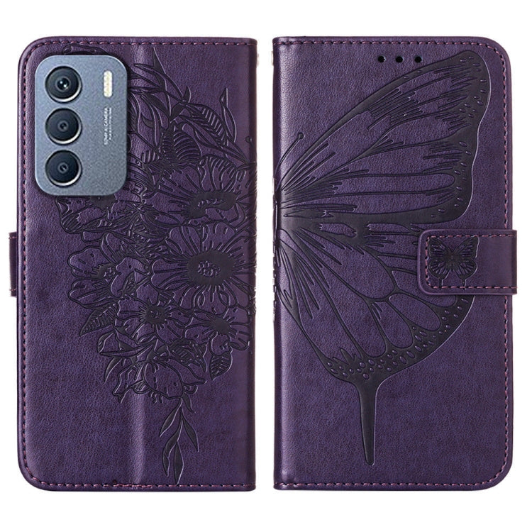 Estuche para Forinfinix Zero 5G 2023 T781 de Cuero con Mariposa en Relieve (Púrpura Oscuro)