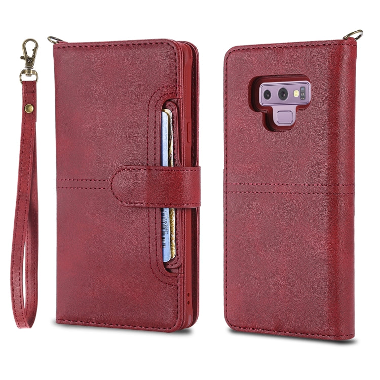 Estuche para Galaxy Note 9 Cuero Tapa Horizontal Magnética Desmontable Multifuncional (Rojo)