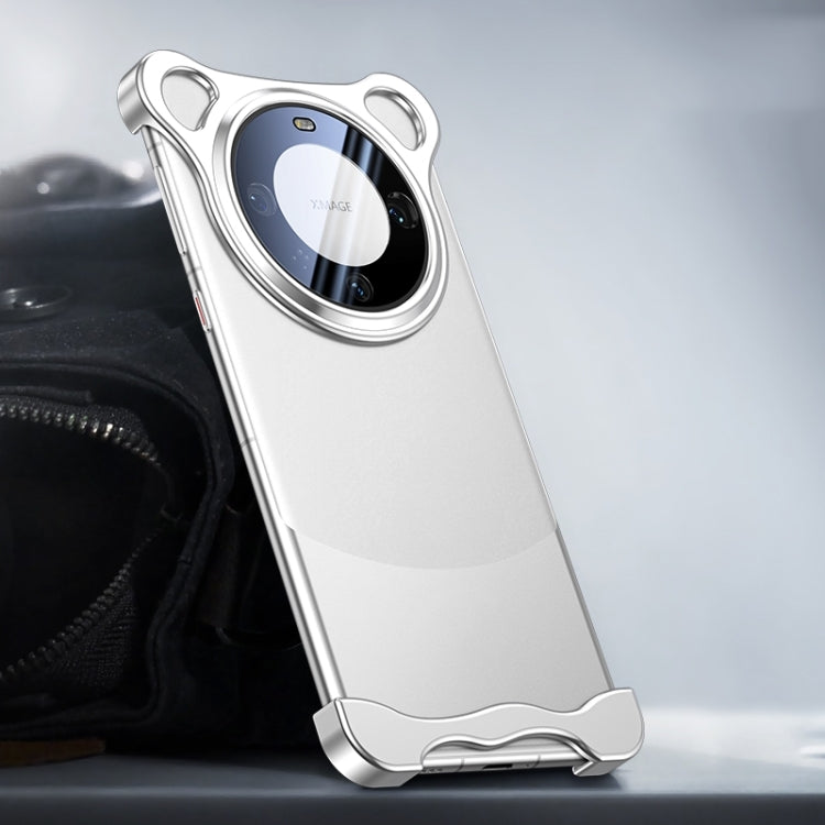Estuche para Huawei Mate 60 Pro+ con Almohadilla de Esquina de Metal y Película para Lentes (Plateado)