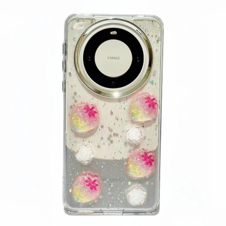 Estuche para Huawei Mate 60 TPU con Flor de Fresa 3D y Marco Galvanizado (Fresa Rosa)
