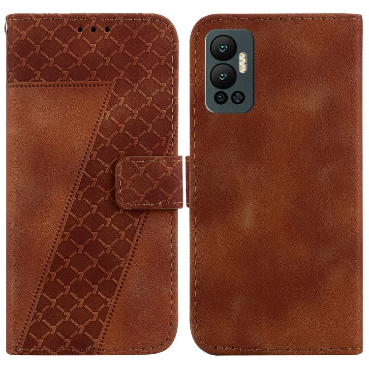 Estuche para Infinix Hot 12 de Cuero en Relieve en Forma de 7 (Marrón)