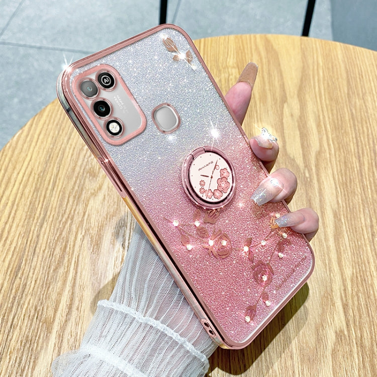 Estuche para Infinix Hot 10 con Anillo de Flor Inmortal y Brillo Degradado (Rosa)