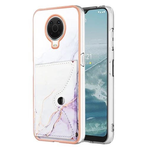 Estuche para Nokia G20 y G10 con Ranura para Tarjeta y Patrón de Mármol (Blanco y Morado)