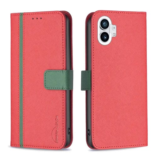 Estuche para Nothing Phone 1 Bf13 de Cuero con Textura Cruzada a Juego de Colores (Rojo)