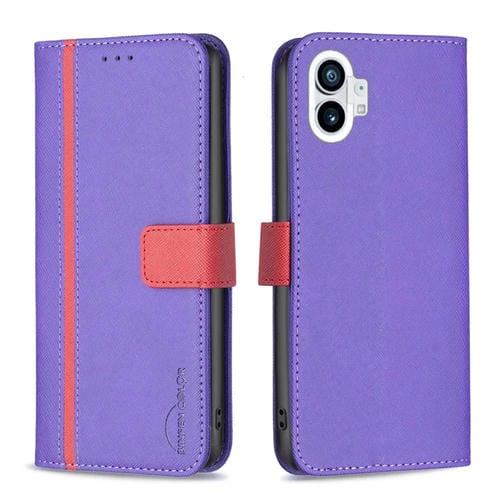 Estuche para Nothing Phone 1 BF13 de Cuero con Textura Cruzada a Juego de Colores (Púrpura)
