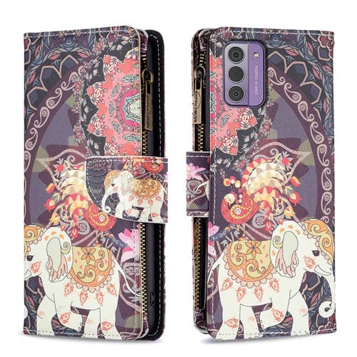 Estuche para Nokia G42 G310 de Cuero con Cremallera y Dibujo Coloreado (Elefante de Flores)
