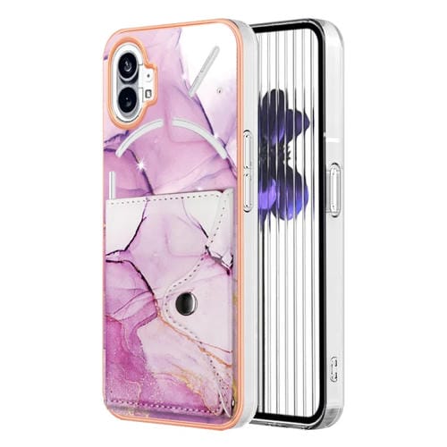 Estuche para Nothing Phone 1 con Ranura para Tarjeta IMD y Patrón Mármol (Oro Rosa, Púrpura)