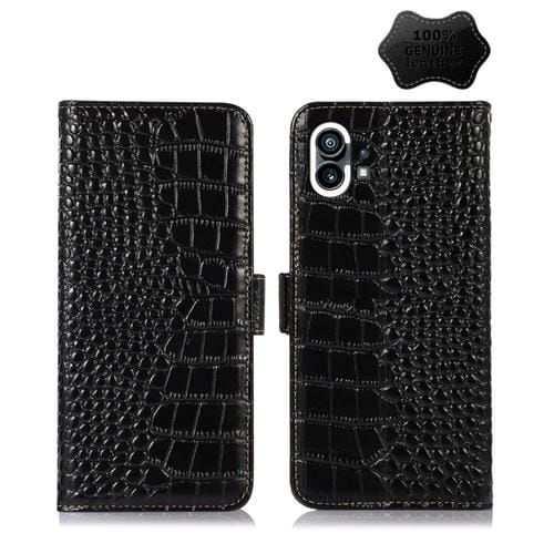 Estuche para Nothing Phone 1 de Piel de Vaca con Capa Superior de Cocodrilo (Negro)