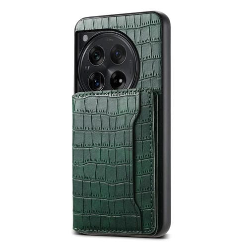 Estuche para OnePlus 12 Denior con Diseño Bolsa para Tarjetas y Textura de Cocodrilo (Verde)
