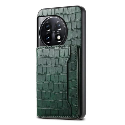 Estuche para OnePlus 11 Denior con Diseño de Bolsa para Tarjetas y Textura de Cocodrilo (Verde)