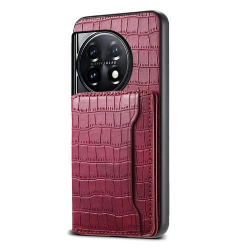 Estuche para OnePlus 11 Denior con Diseño Bolsa para Tarjetas y Textura de Cocodrilo (Rojo)