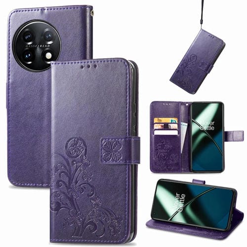 Estuche para OnePlus 11 de Cuero con Hebilla en Relieve y Cierre de Cuatro Hojas (Púrpura)