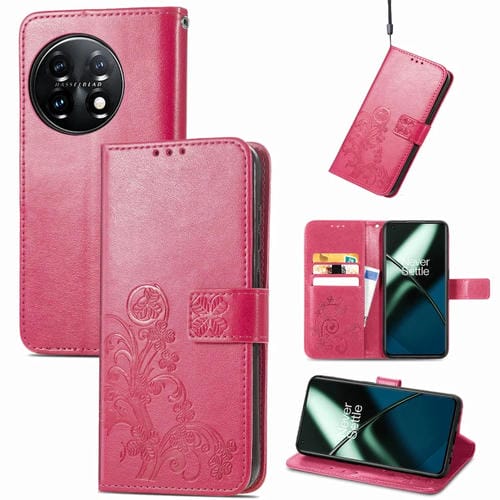 Estuche para OnePlus 11 de Cuero con Hebilla en Relieve y Cierre de Cuatro Hojas (Rosa)