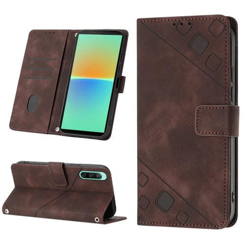 Estuche para Sony Xperia 10 V de Cuero en Relieve con Doble Forma de 8 (Marrón)