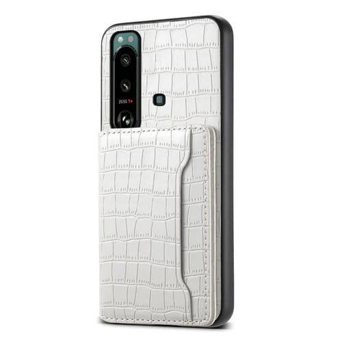 Estuche para Sony Xperia 5 III con Diseño de Bolsa para Tarjetas y Textura de Cocodrilo (Blanco)