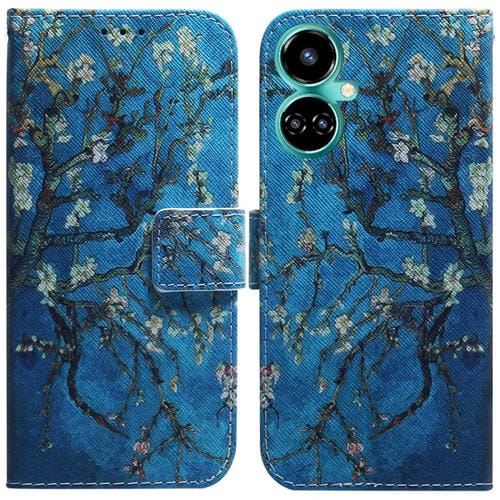 Estuche para Tecno Camon 18I de Cuero con Dibujo Coloreado y Textura de Cristal (Flor de Ciruelo)