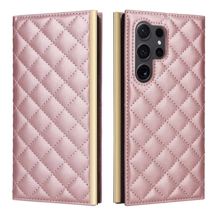 Estuche Cruzado de Cuero para Samsung Galaxy S24 Ultra 5G con Ventosa Romboidal (Oro Rosa)