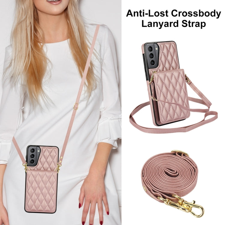 Estuche Cruzado para Teléfono Samsung Galaxy S21+ 5G Ym015 con Tarjeta Rómbica Rfid (Oro Rosa)