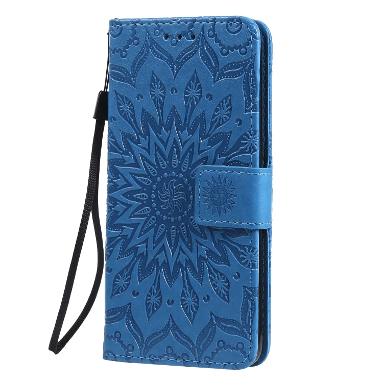 Estuche Cuero Pu para LG K51 con Tapa Horizontal, Soporte, Ranuras para Tarjetas y Cordón (Azul)
