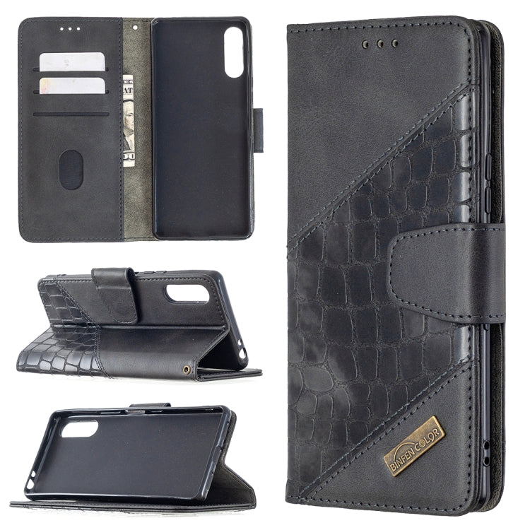 Estuche Cuero Pu Sony Xperia L4 Tapa Horizontal Textura Cocodrilo con Billetera y Soporte (Negro)