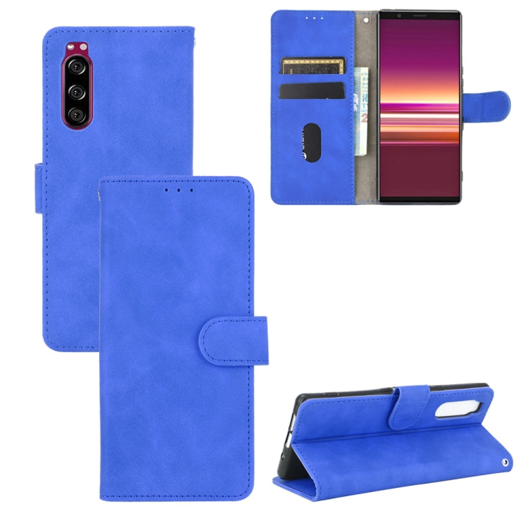 Estuche Cuero Sintético Sony Xperia 5 Abatible Horizontal con Soporte y Billetera (Negro)